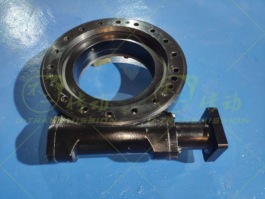 裝配調(diào)試時(shí)對(duì)回轉(zhuǎn)驅(qū)動(dòng)進(jìn)行多點(diǎn)的齒間隙檢測(cè),保證回轉(zhuǎn)驅(qū)動(dòng)的精度在0.05°以內(nèi),調(diào)整完齒間隙,對(duì)回轉(zhuǎn)驅(qū)動(dòng)進(jìn)行靈活性檢測(cè),確保一圈上所有的點(diǎn)都不能有卡阻現(xiàn)象,保證客戶裝機(jī)使用萬(wàn)無(wú)一失。不二傳動(dòng)始終本著為客戶著想,給客戶提供最大的便捷,這款回轉(zhuǎn)驅(qū)動(dòng)專門為客戶設(shè)計(jì)了適配法蘭,客戶收到貨后,可以直接連接減速電機(jī),方便省心。