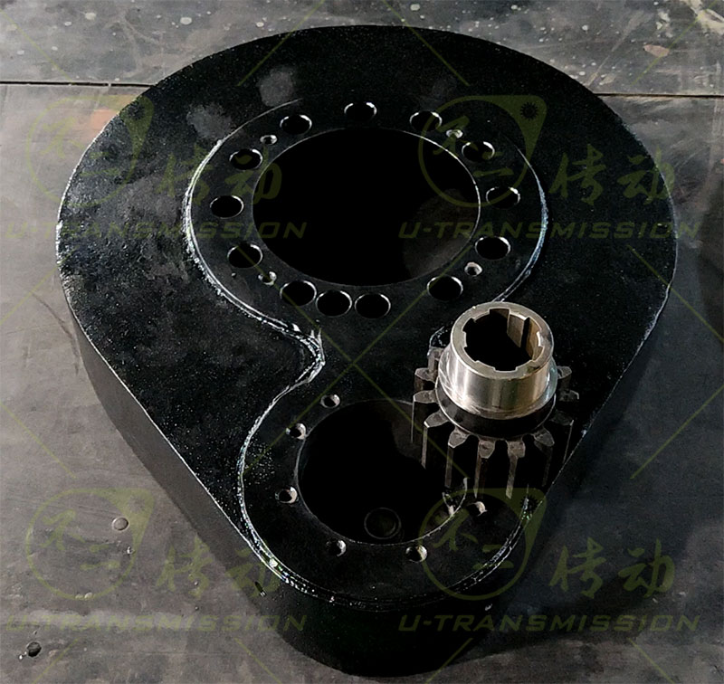 SP-II-0240 外齒齒輪式回轉(zhuǎn)驅(qū)動(dòng)應(yīng)用在工程機(jī)械領(lǐng)域,使用工況轉(zhuǎn)速高,扭矩大,輸出扭矩不平穩(wěn),沖擊載荷大,全天候使用,使用現(xiàn)場(chǎng)環(huán)境惡略,根據(jù)客戶工況設(shè)計(jì)了SP-II-0240回轉(zhuǎn)驅(qū)動(dòng),為了應(yīng)對(duì)復(fù)雜多變的受力情況,對(duì)回轉(zhuǎn)驅(qū)動(dòng)進(jìn)行了加強(qiáng)設(shè)計(jì),回轉(zhuǎn)支承,齒輪等關(guān)鍵部件進(jìn)行強(qiáng)化。