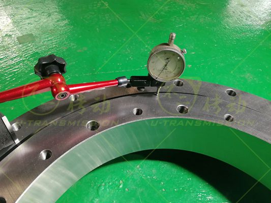 020.25.560 精密雙排球回轉(zhuǎn)支承客戶用在破碎設(shè)備上,轉(zhuǎn)速60轉(zhuǎn)/分鐘,由皮帶輪直接帶動旋轉(zhuǎn),雙排球回轉(zhuǎn)支承具有轉(zhuǎn)速高,載荷大,抗傾覆能力好,運轉(zhuǎn)平穩(wěn)等特點,加工的難點是保證兩排溝道位置一致還需要保證兩排溝道平行,只有這樣兩排鋼球才能同時受力,才是真正意義上的雙排球,加工不好的話只有一排鋼球受力,就變成單排球回轉(zhuǎn)支承了,失去了使用雙排球回轉(zhuǎn)支承的意義。
