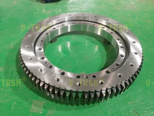 S-III-O-0555 外齒齒輪式回轉(zhuǎn)驅(qū)動(dòng)應(yīng)用在重型機(jī)械設(shè)備上,用來(lái)轉(zhuǎn)動(dòng)工件,回轉(zhuǎn)驅(qū)動(dòng)載重不大,但是使用中有較大的傾覆力,設(shè)備的安裝空間比較有限,不能使用回轉(zhuǎn)中心直徑大的驅(qū)動(dòng),綜合考慮最終選擇了重載系列的0555這個(gè)型號(hào)。