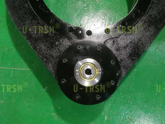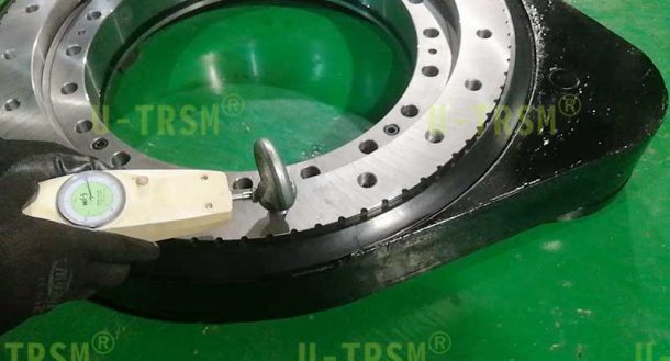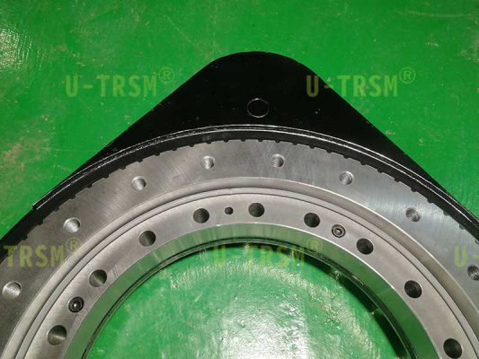 重載系列的回轉(zhuǎn)驅(qū)動(dòng)回轉(zhuǎn)支承加厚設(shè)計(jì),鋼球選用更大規(guī)格的,殼體加厚設(shè)計(jì),法蘭定位銷加強(qiáng)設(shè)計(jì),這樣的設(shè)計(jì)可以顯著提高回轉(zhuǎn)驅(qū)動(dòng)的傾覆力矩,齒輪和齒圈采用模數(shù)8的齒,進(jìn)行齒淬火增加齒面的耐磨性和耐沖擊性,適合客戶頻繁啟停的工況,客戶的電機(jī)法蘭特殊,如果想要直接連接只能通過(guò)給回轉(zhuǎn)驅(qū)動(dòng)的法蘭預(yù)埋螺栓的方式實(shí)現(xiàn),我們采用了非??煽康念A(yù)埋螺栓的方法,既能保證客戶使用的可靠性,又能非常方便的拆卸更換。