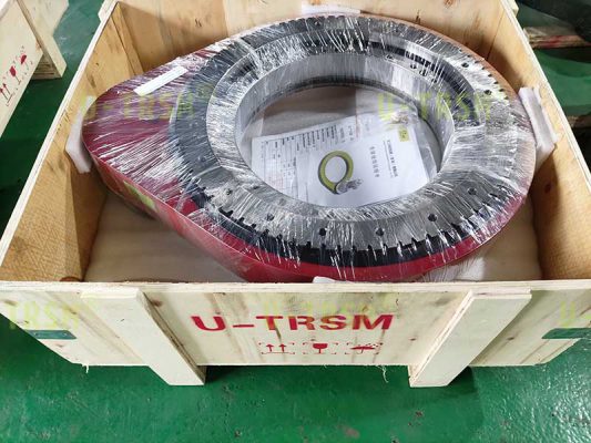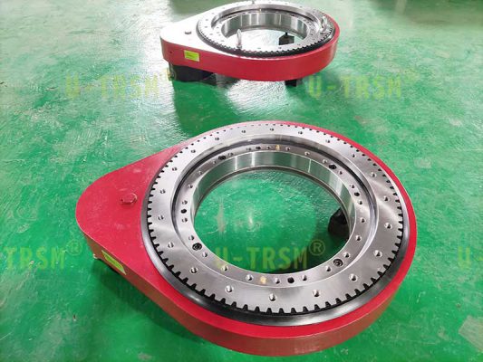 我們的工程師根據(jù)客戶的這些需求,結(jié)合客戶的設(shè)備允許的空間尺寸,設(shè)計了這款S-II-O-0450回轉(zhuǎn)驅(qū)動。此驅(qū)動中的回轉(zhuǎn)支承和小齒輪采用模數(shù)6的齒,并且對齒進(jìn)行淬火加工。原材料選用42CrMo鍛件,并對原材料進(jìn)行調(diào)質(zhì)處理。齒輪的支承軸承進(jìn)行強化設(shè)計,完全滿足客戶對大輸出扭矩的要求。