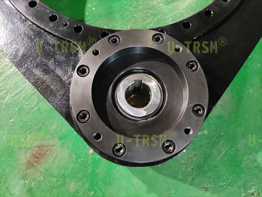 根據(jù)設(shè)備的使用工況及底座和法蘭的尺寸,不二傳動(dòng)的工程師推薦客戶使用型號(hào)為S-II-O-0541的回轉(zhuǎn)驅(qū)動(dòng)。這個(gè)型號(hào)尺寸適中,模數(shù)6的齒,輸出扭矩足夠使用,中等載荷完全滿足客戶使用要求。