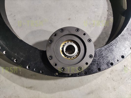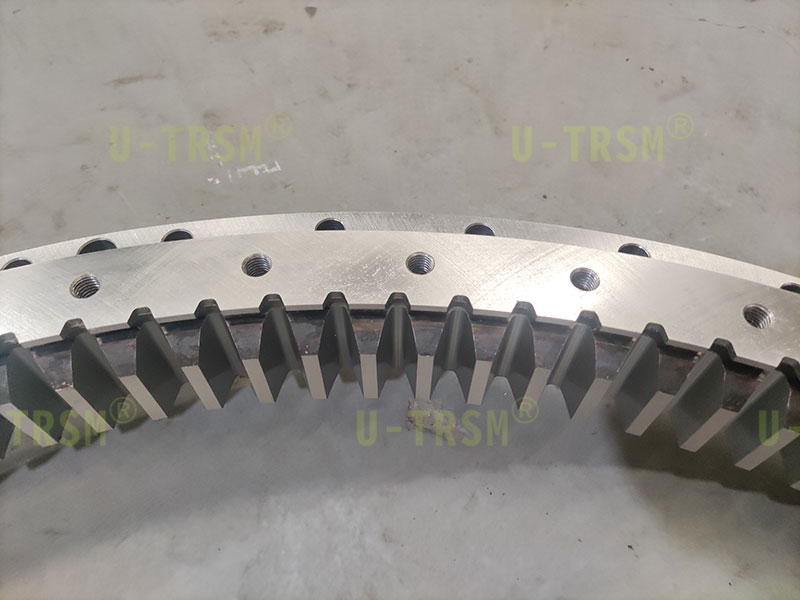 該回轉驅動采用零游隙設計,齒淬火后進行磨齒加工,內齒回轉驅動成品可以達到跳動≤0.03mm,整圈最大齒間隙≤0.15mm,回轉驅動空載啟動力矩120N.M,旋轉靈活無卡滯現(xiàn)象,完全滿足使用要求。