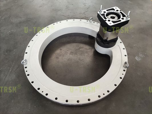 齒輪式回轉(zhuǎn)驅(qū)動(dòng)有外齒和內(nèi)齒的區(qū)別,外齒回轉(zhuǎn)驅(qū)動(dòng)齒輪在回轉(zhuǎn)驅(qū)動(dòng)的外部,減速機(jī)和電機(jī)都安裝在外部,內(nèi)部的空間就可以節(jié)省出來布置其它的裝置。內(nèi)齒回轉(zhuǎn)驅(qū)動(dòng)齒輪在回轉(zhuǎn)驅(qū)動(dòng)的內(nèi)部,減速機(jī)和電機(jī)都安裝在內(nèi)部,外部的空間就能節(jié)省出來。根據(jù)設(shè)備整體布局綜合考慮安裝維修就能很快確定選擇外齒或者內(nèi)齒的回轉(zhuǎn)驅(qū)動(dòng)。