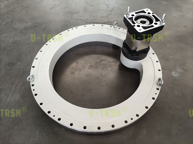 了解了客戶的工況后,不二傳動(dòng)的工程師設(shè)計(jì)了外齒的回轉(zhuǎn)驅(qū)動(dòng)用來轉(zhuǎn)動(dòng)外部轉(zhuǎn)臺(tái),又巧妙的利用外齒回轉(zhuǎn)驅(qū)動(dòng)內(nèi)部的空間設(shè)計(jì)了內(nèi)齒回轉(zhuǎn)驅(qū)動(dòng),用來轉(zhuǎn)動(dòng)內(nèi)部轉(zhuǎn)臺(tái),這樣既節(jié)約了安裝空間,又滿足了客戶的需求,加工制造難度也有了大幅降低。不二傳動(dòng)在回轉(zhuǎn)類產(chǎn)品的設(shè)計(jì)生產(chǎn)方面擁有豐富的經(jīng)驗(yàn)和活躍的思維,期待您的垂詢。