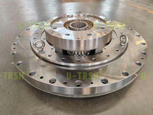 S-III-I-0755直齒式內(nèi)齒回轉(zhuǎn)驅(qū)動,同向設計使得安裝面在同一側(cè),節(jié)省了設備的安裝空間,應用在自動化特種設備上,旋轉(zhuǎn)機械臂底座,此回轉(zhuǎn)驅(qū)動主要承受軸向載荷、傾覆力矩及扭矩,大扭矩輸出。磨齒的加工方式能使得回轉(zhuǎn)驅(qū)動的齒嚙合達到6級及以上的精度,實現(xiàn)精準定位,減小回程間隙,滿足客戶使用。